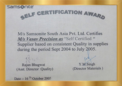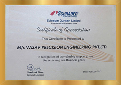 Vasav Precision has been an ISO certified company since 2001. Today it is certified by BVQI for ISO 9001-2015. We have maintained our ISO spirit as can be seen from our quality and customer satisfaction.
