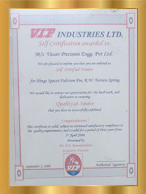 Vasav Precision has been an ISO certified company since 2001. Today it is certified by BVQI for ISO 9001-2015. We have maintained our ISO spirit as can be seen from our quality and customer satisfaction.